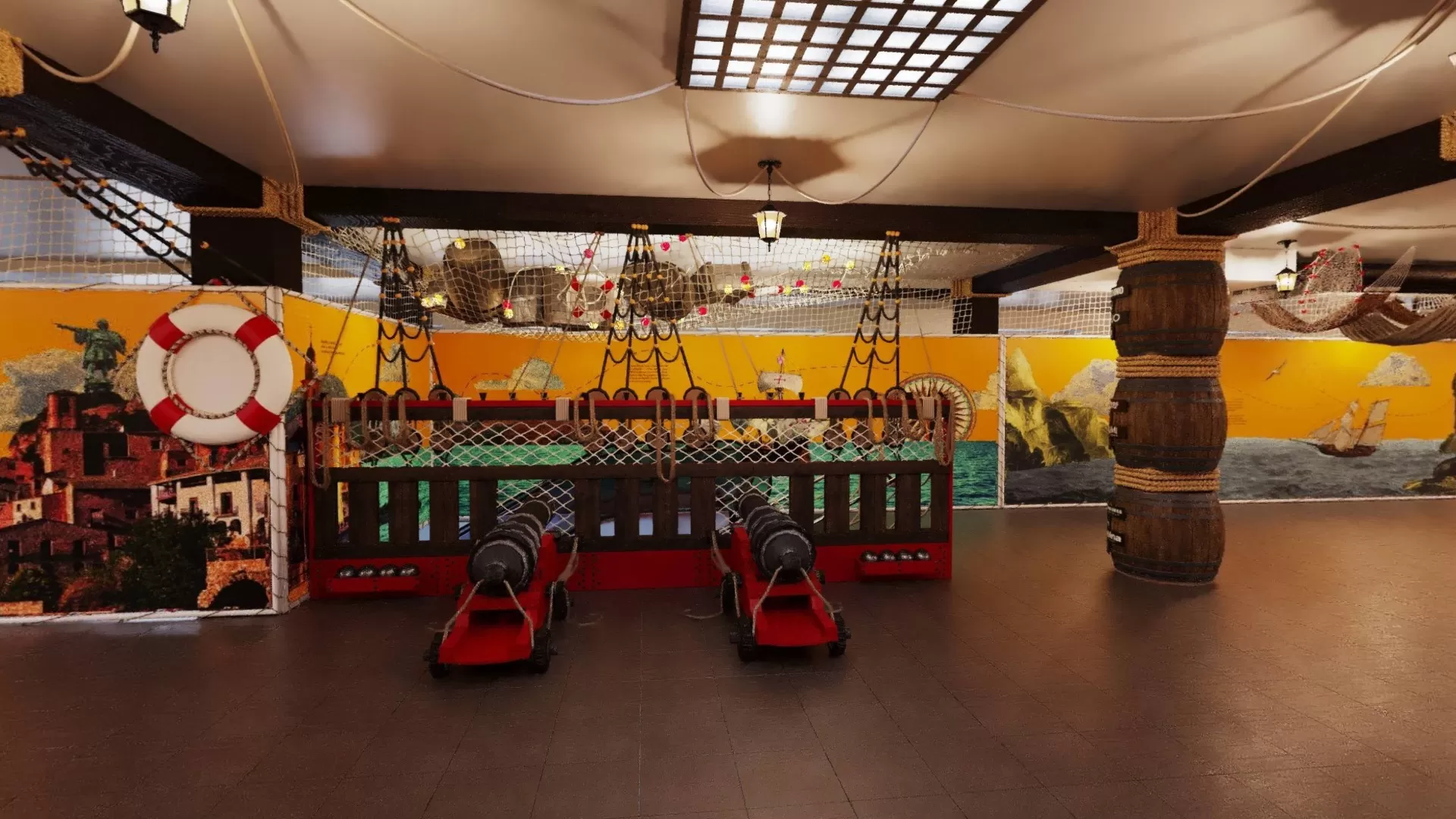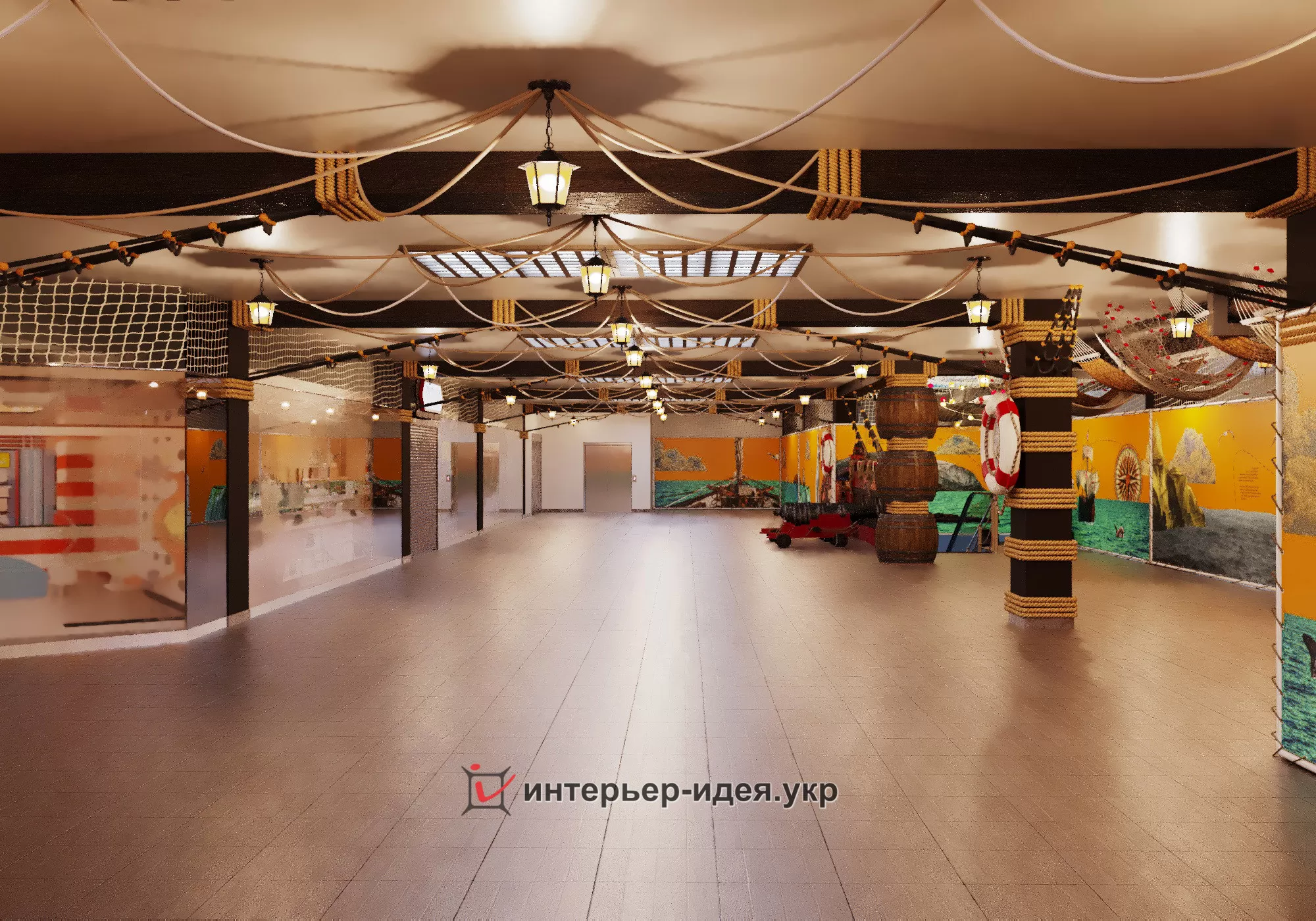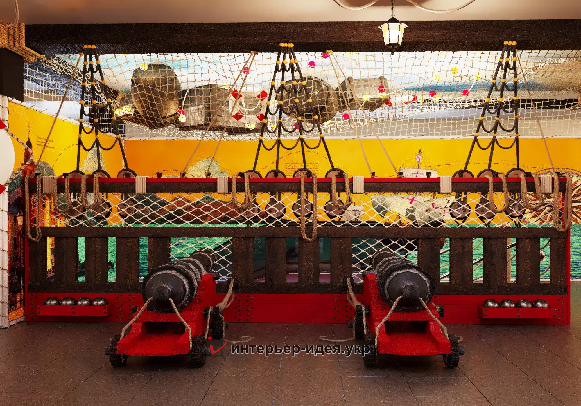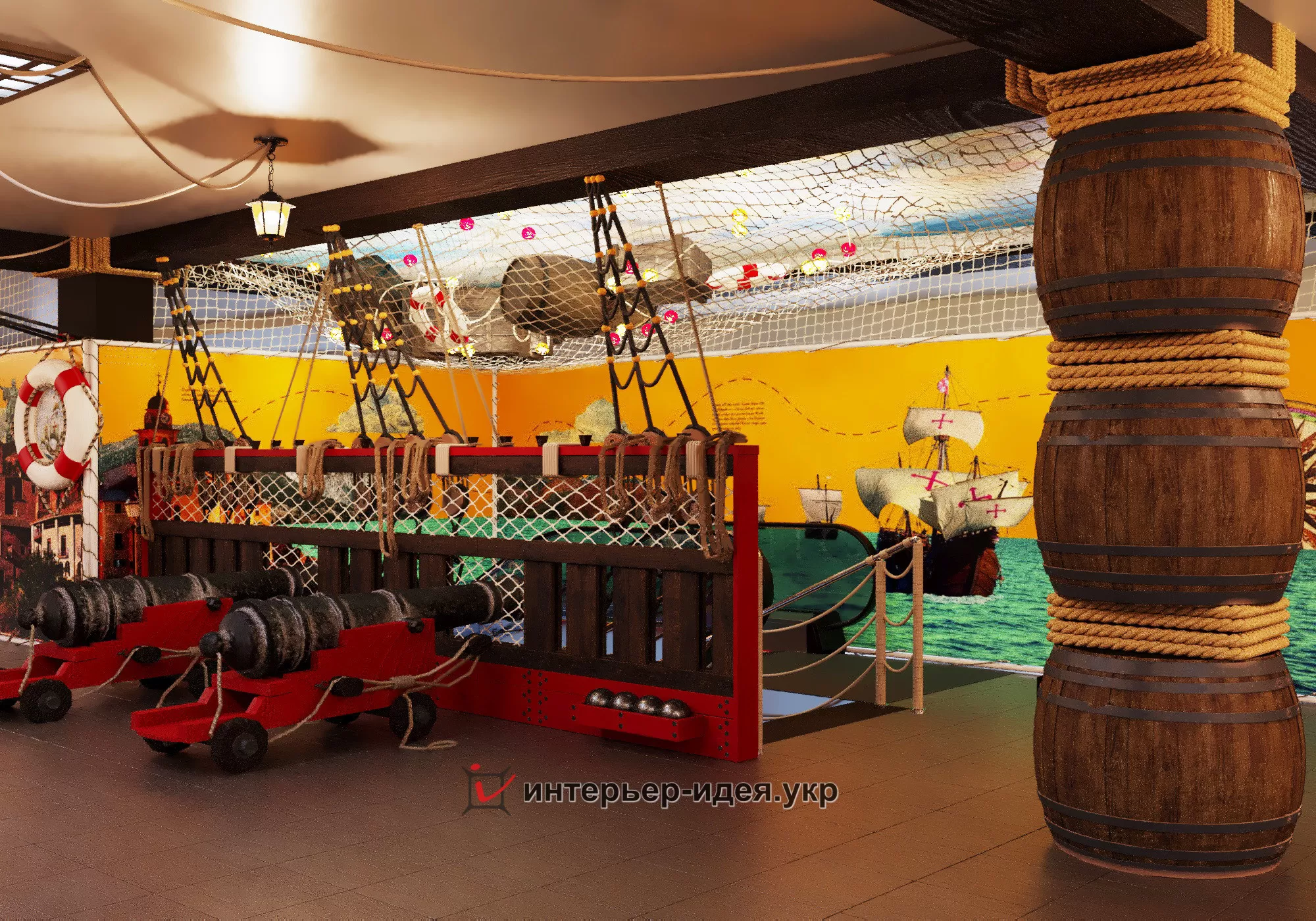 Елементи декору – бочки, сітки, канати, гамаки та інша морська атрибутика.