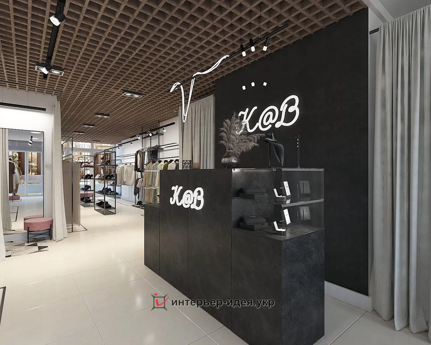 Молода замовниця звернулася з проханням оформити дизайн магазину одягу. Замовниця мала повне уявлення, що їй хотілося б отримати на виході, плюс початкові дані приміщення, яке вона зняла в оренду, відповідали її вимогам