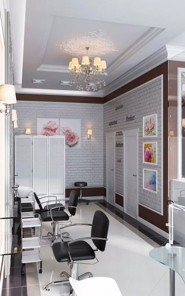 Концепція дизайну. Основне завдання дизайн-проекту полягала в тому, щоб громадський заклад був світлим і затишним, наявність практичного розташування обладнання і належне забезпечення освітленням. Стиль арт-деко характеризується лаконічним використанням карнизів або молдингів, де особливого акценту додають дзеркала з LED підсвічуванням. Кольорові склоблоки доцільно доповнюють спокійну колірну гамму стін.