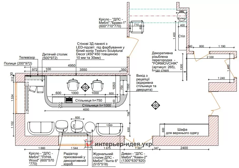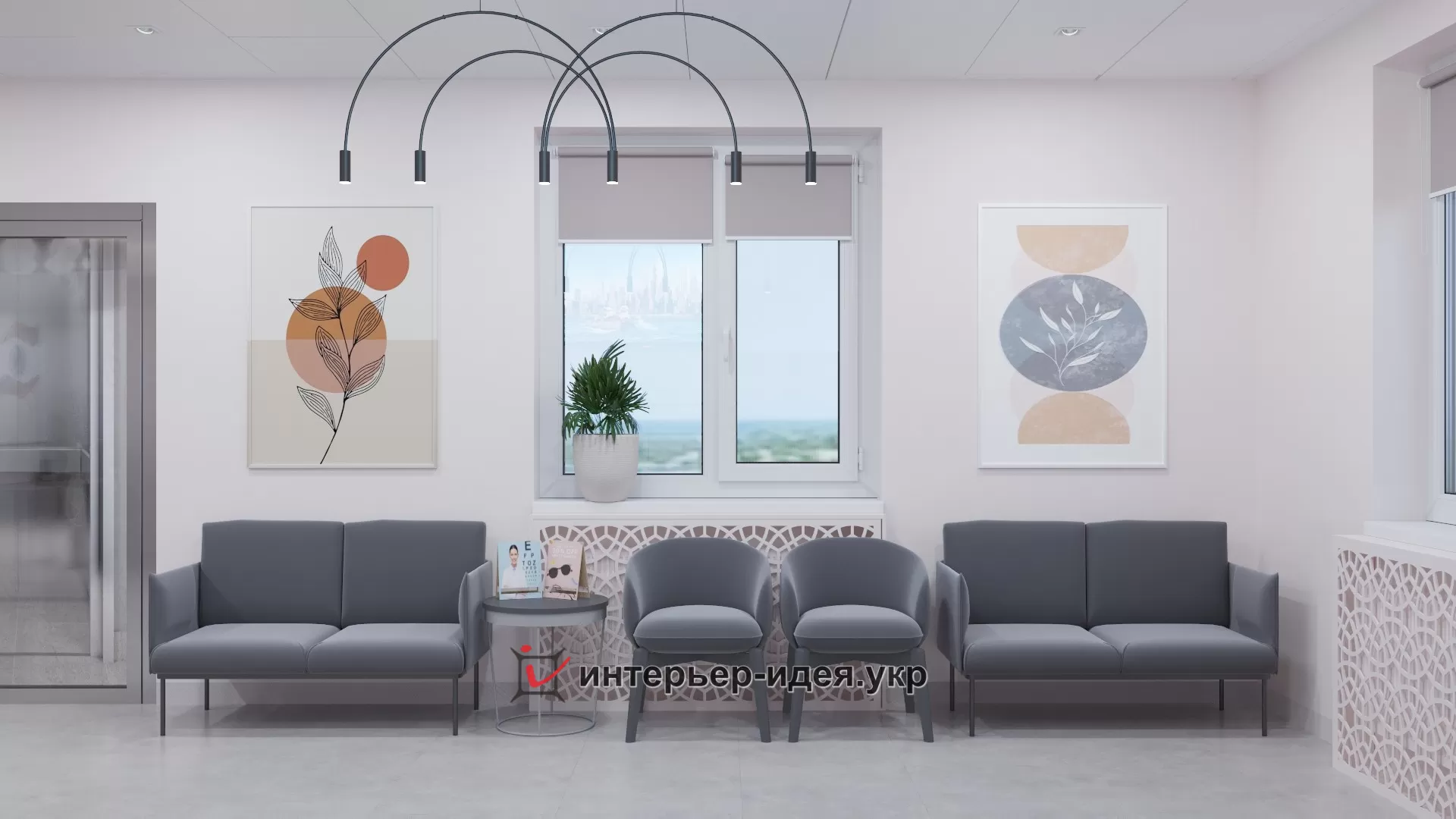 Навпроти рецепції – зручні дивани та крісла, де відвідувачі зможуть присісти і дочекатись своєї черги.