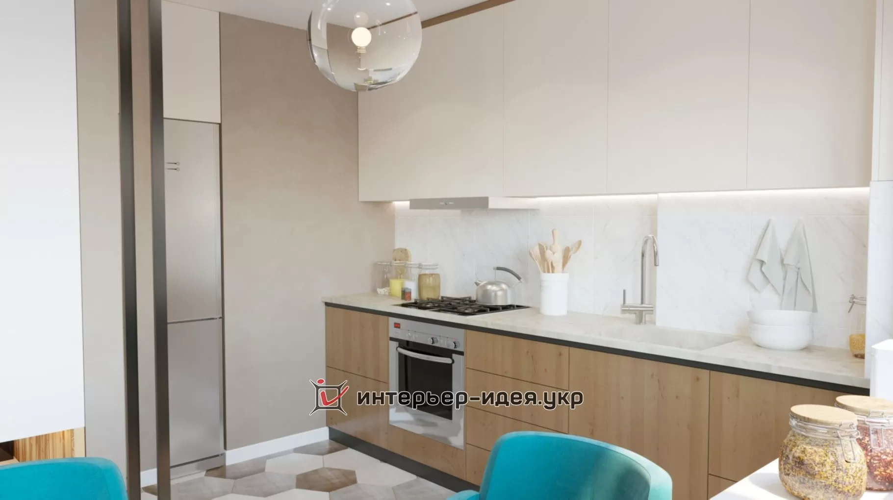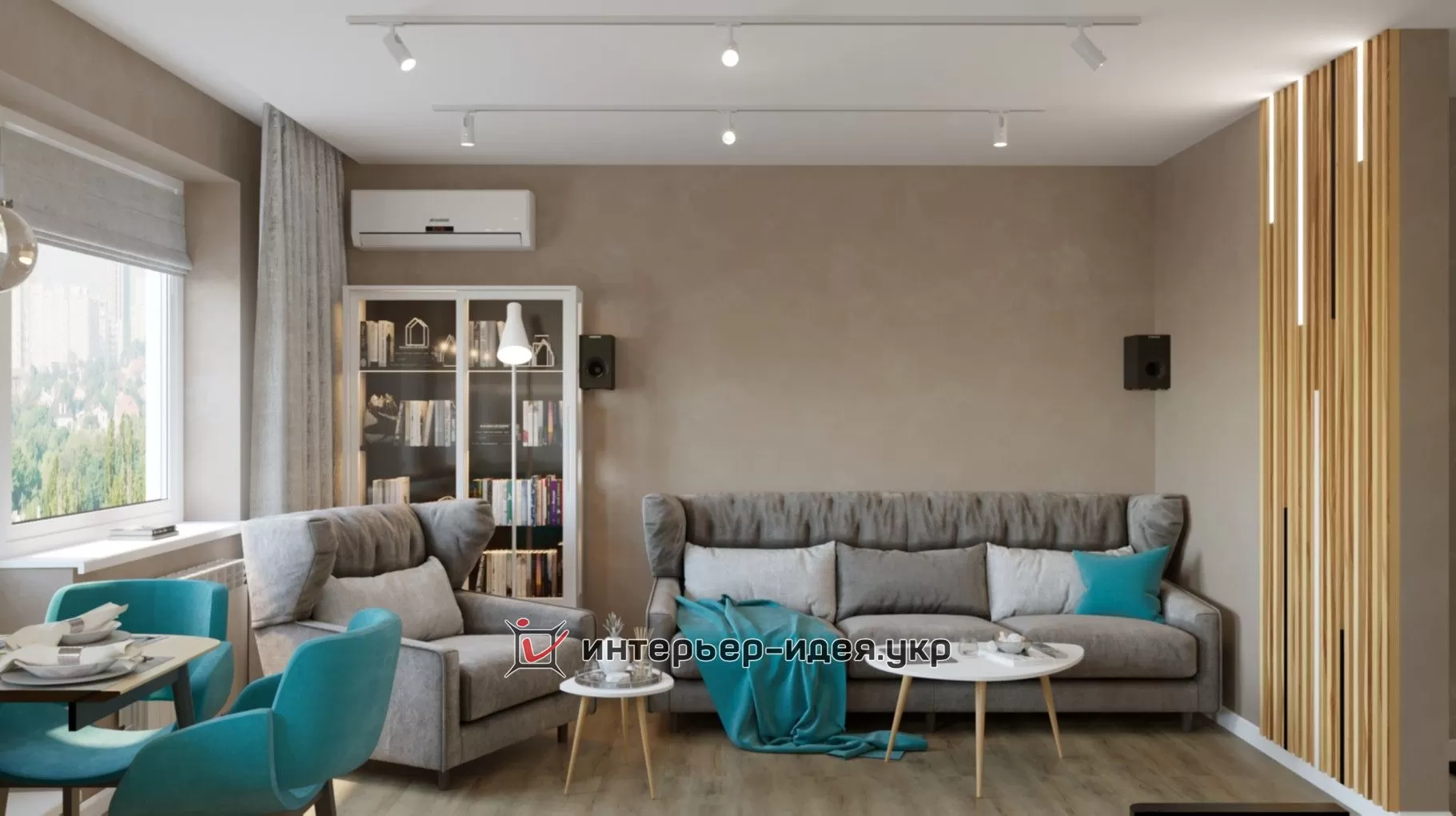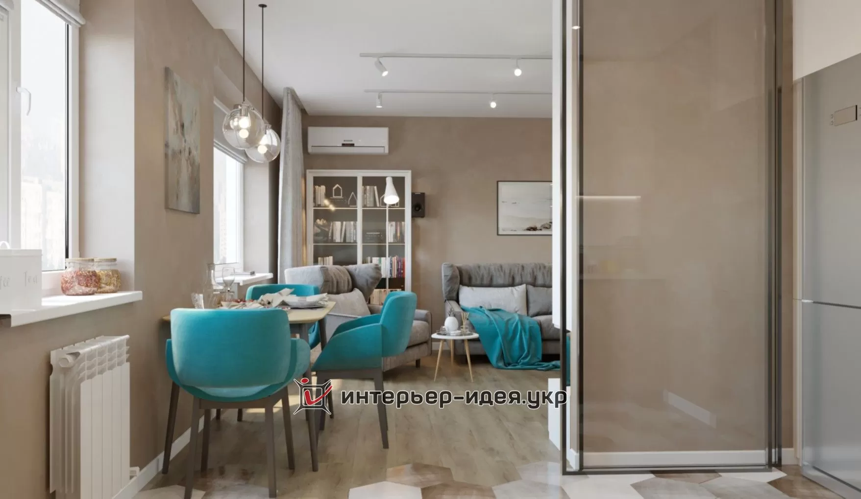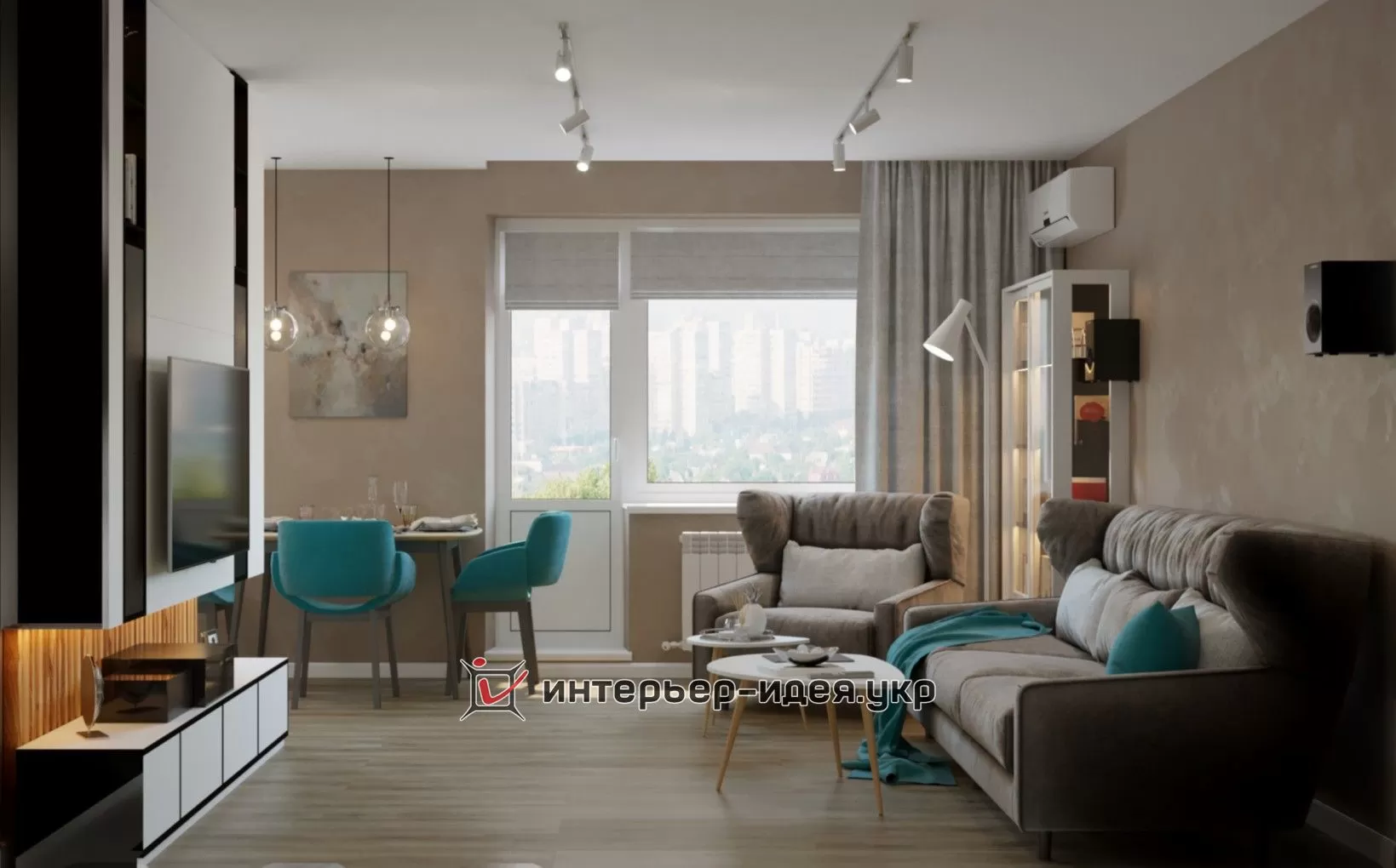 Дизайн-проект був зроблений в теплих тонах з бірюзовими акцентами.
