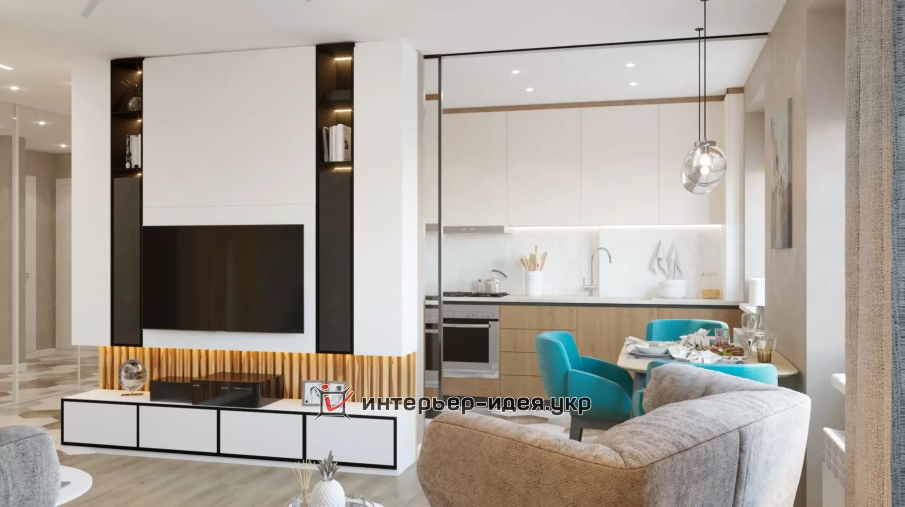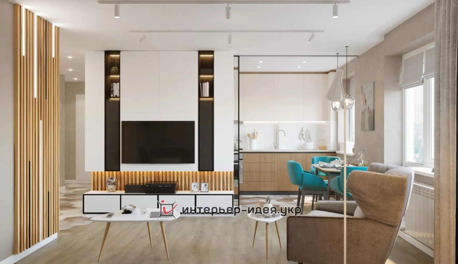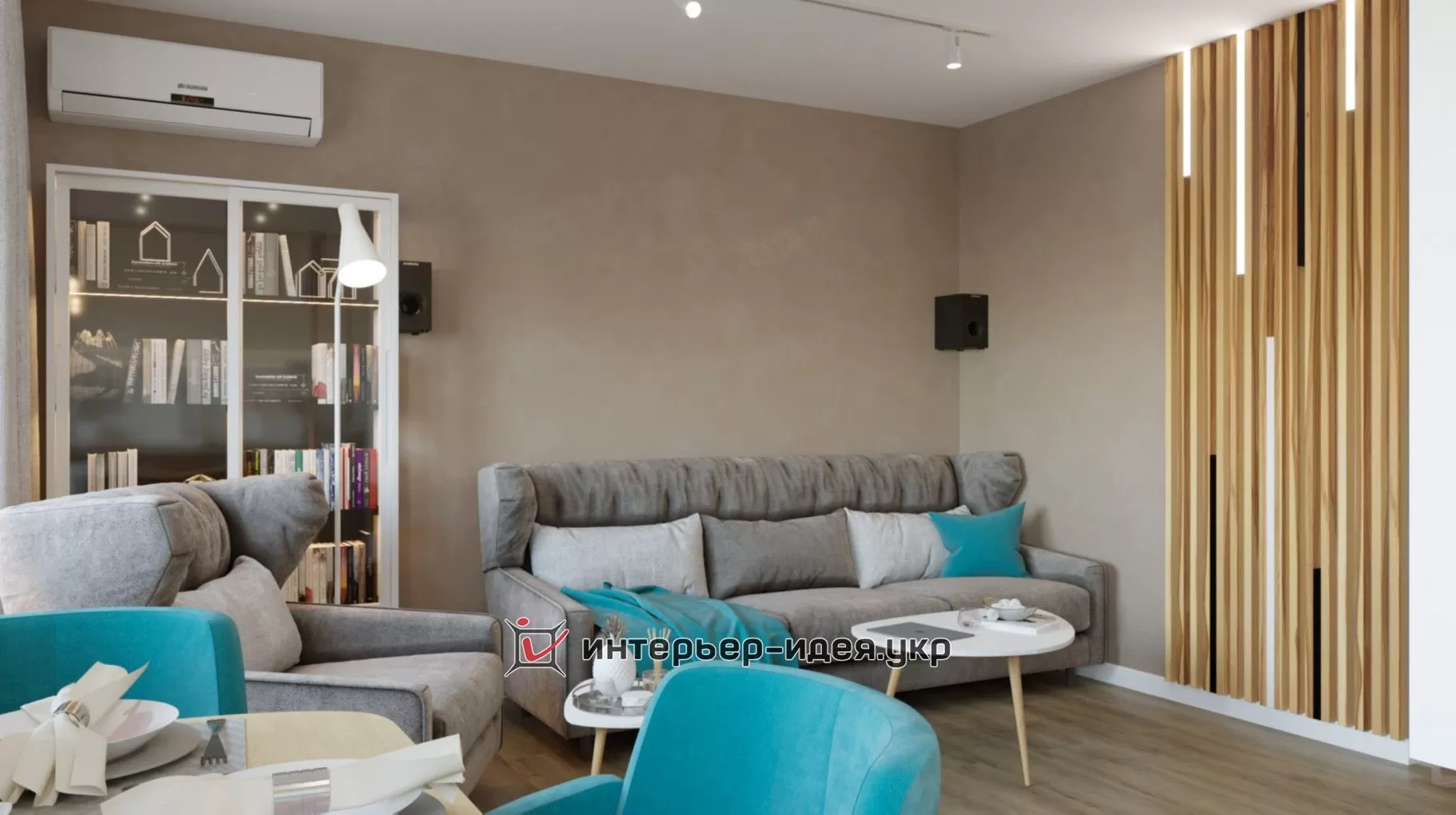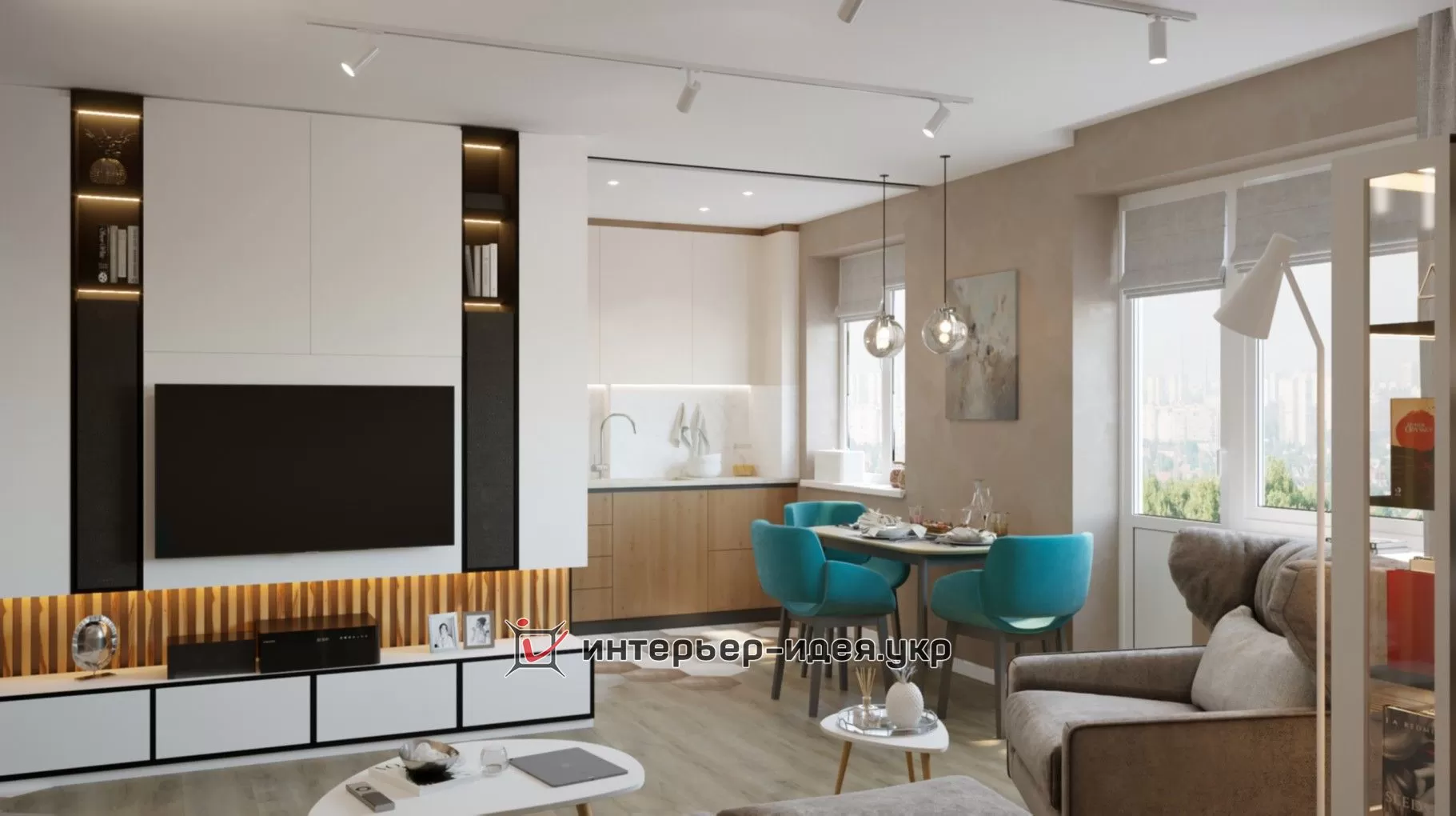 Дизайн-проект був зроблений в теплих тонах з бірюзовими акцентами.