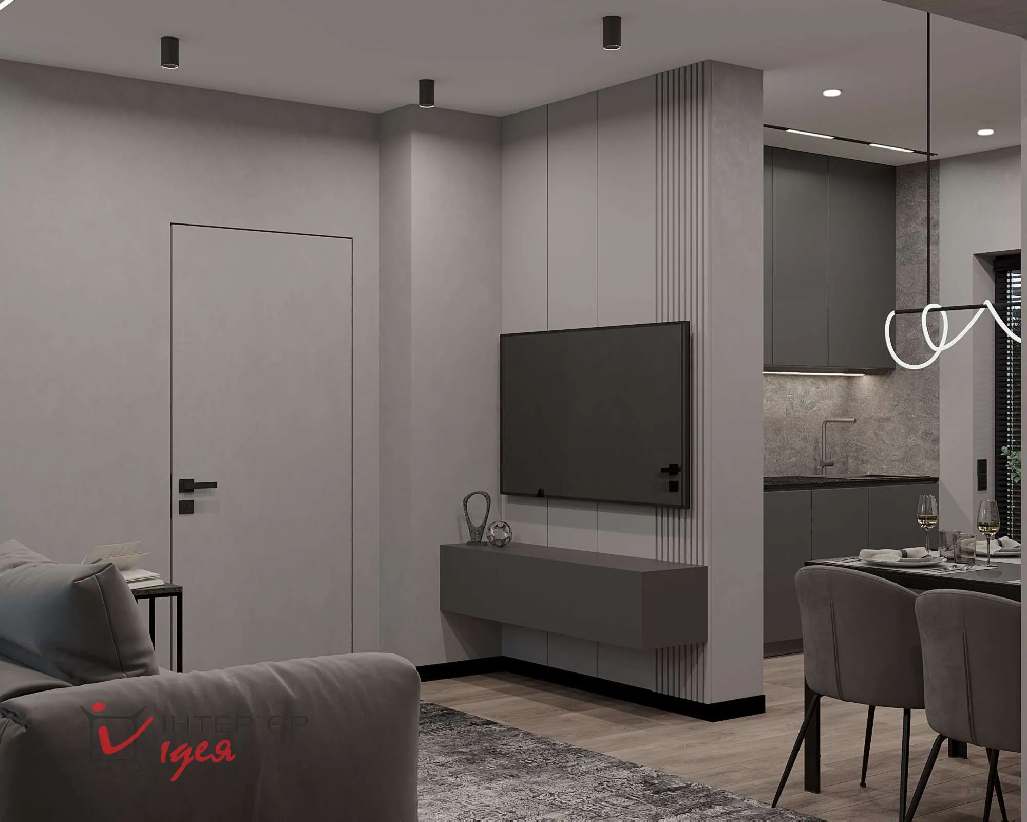 Зона ТВ оздоблена МДФ панелями під фарбування.