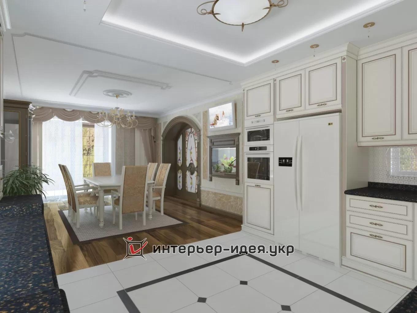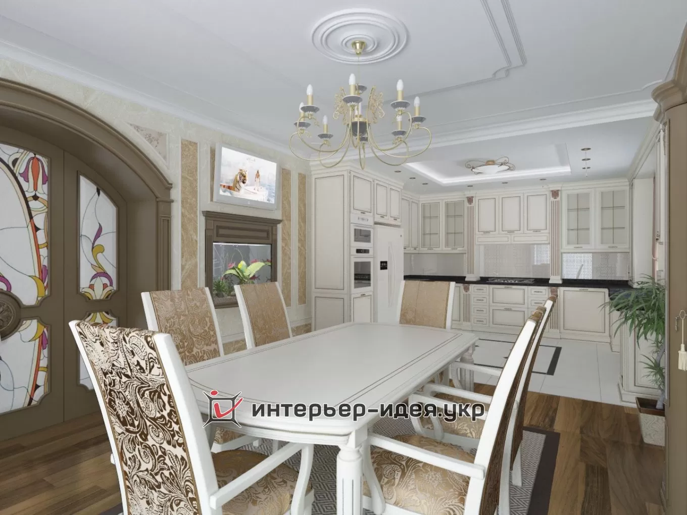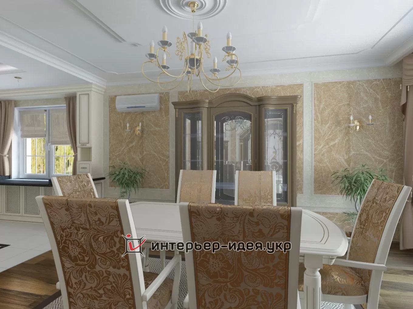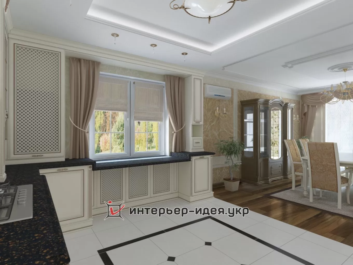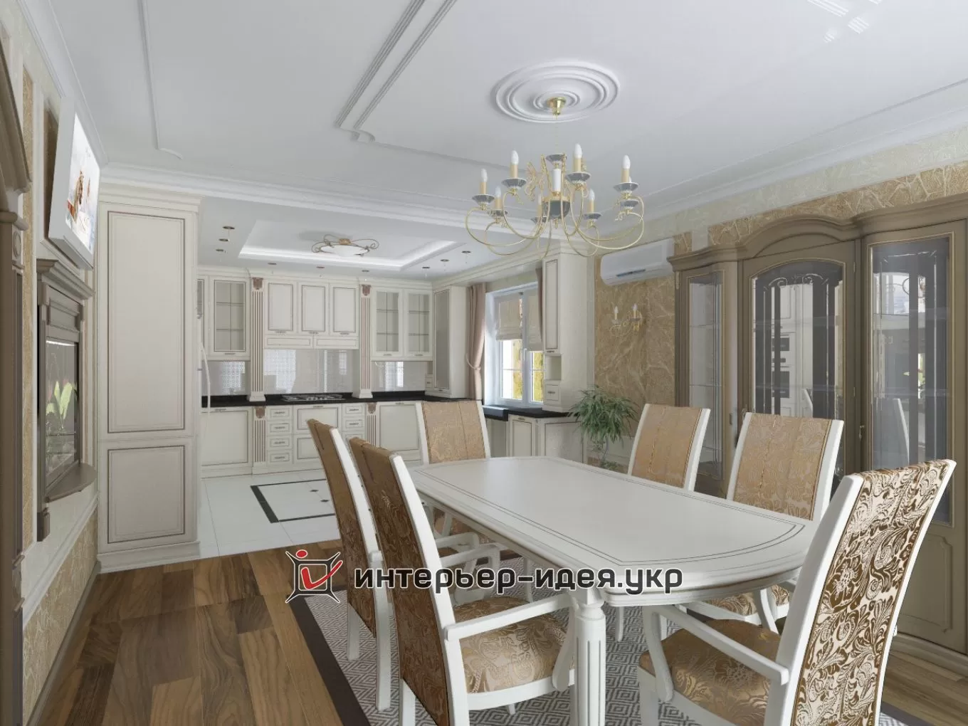 Дизайн кухні та їдальної зони в класичному стилі