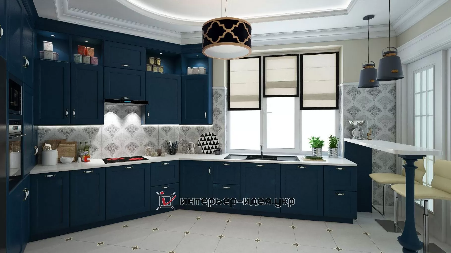 Дизайн класичної вітальні кольору індиго, м. Львів