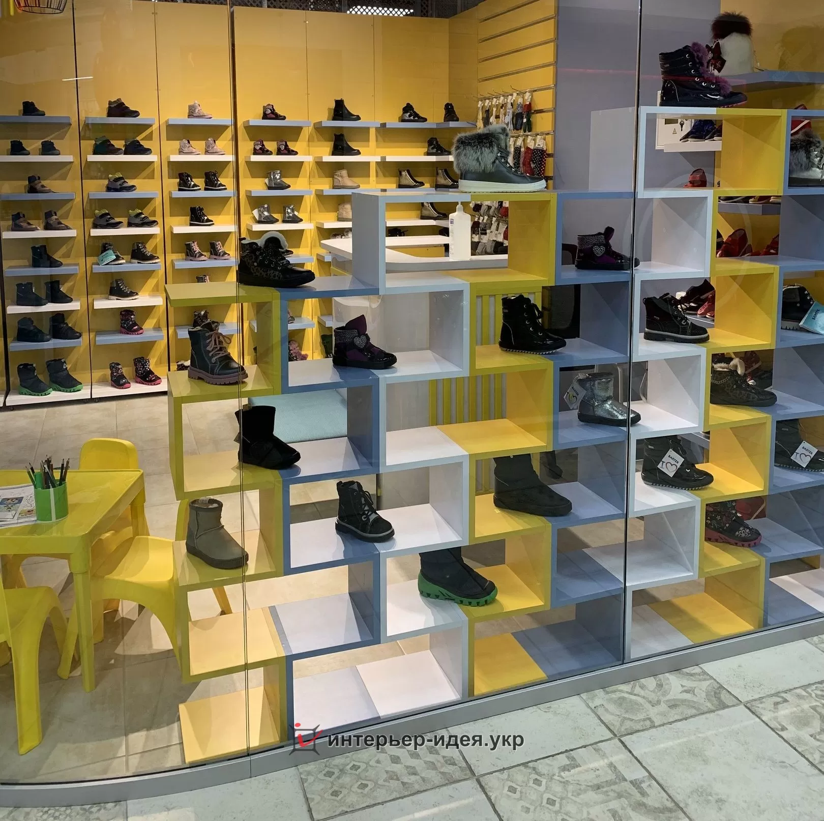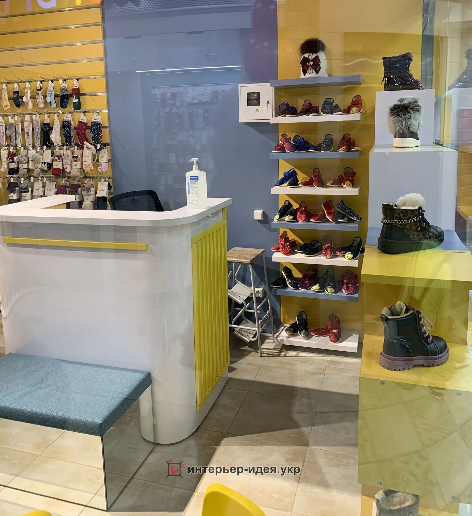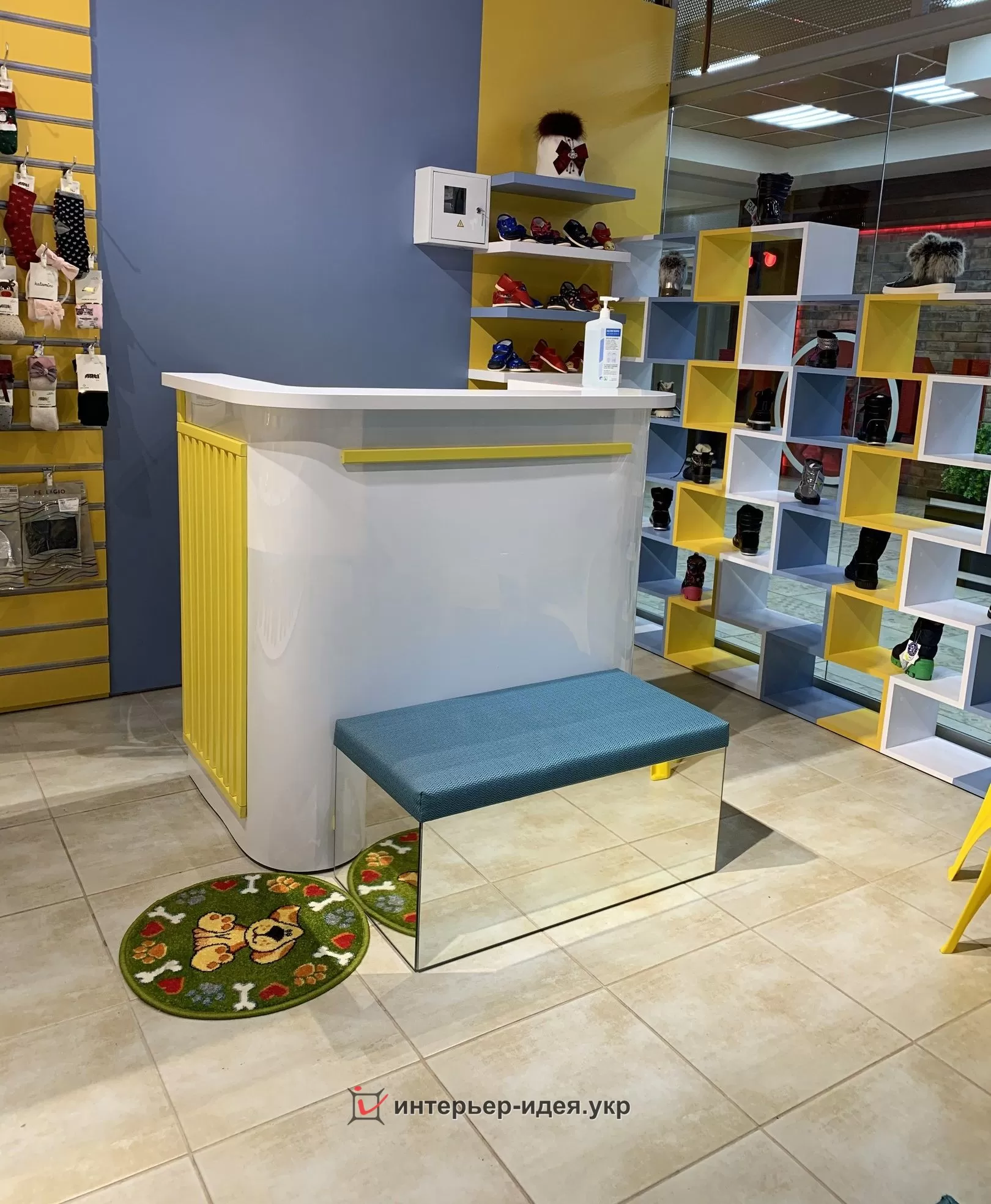 Меблі виготовлені з ДСП та МДФ. ДСП "SWISS KRONO" колір "3271 VL Холодний блакитний" та "EGGER" "U114 ST9 жовтий діамант".